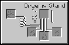 Brewing occurs when at least one Water Bottle is placed in one of the three Water Bottle slots in the Brewing Stand and a brewing ingredient is placed in the ingredient slot, with Blaze Powder in the power slot, the result being a potion that gives the Player (or Mob) Status Effects.